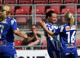 Jag avslutar med att tacka Edina Begovic och Julina Andersson för målgesten de bjöd på efter lagets 3-0. De kan säkert berätta för oss andra vad det föreställde. (Min teori är skadade maskar alternativt sälar med kraftig kolik...)