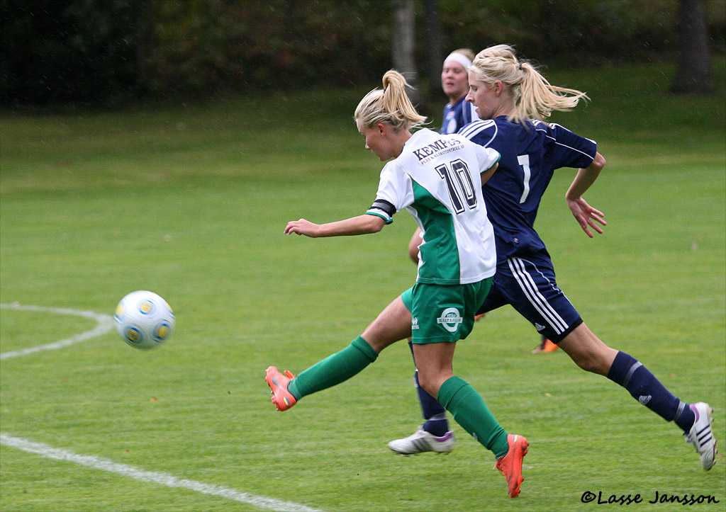Jag hann dock med att fota Tuns målskytt och framförallt målet. Erica Thorell, inte helt obekant målskytt, fick fatt på bollen och drar på sedvanligt manér iväg i högsta fart på vänsterkanten innan hon på ganska långt håll skjuter bollen över målvaktens fingrar och in i mål.